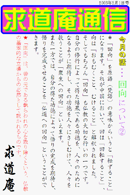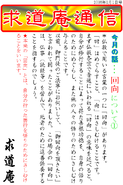 ★ 「回向」という言葉にあまりなじみのない方もあると思いますが、仏教では