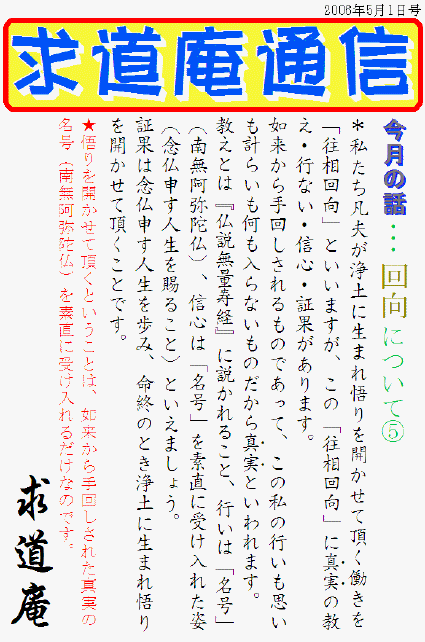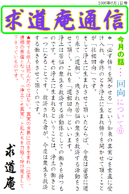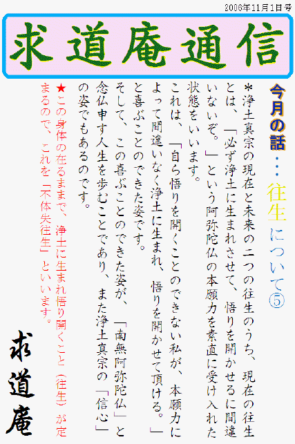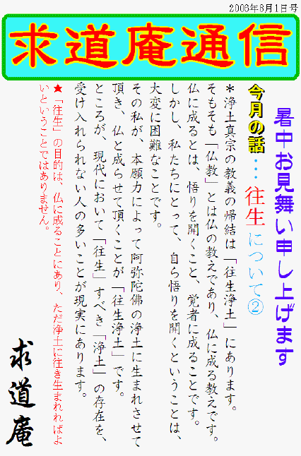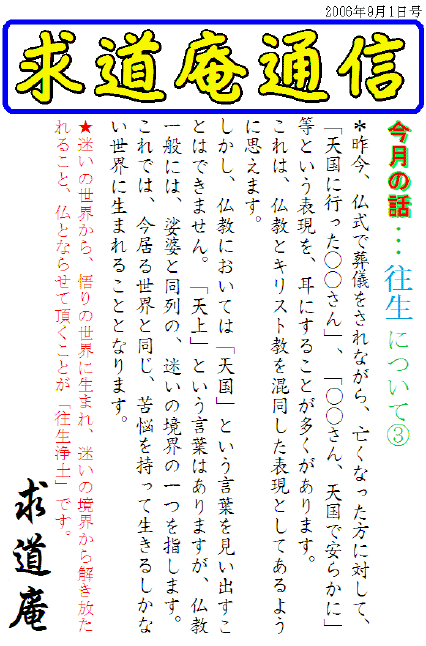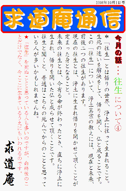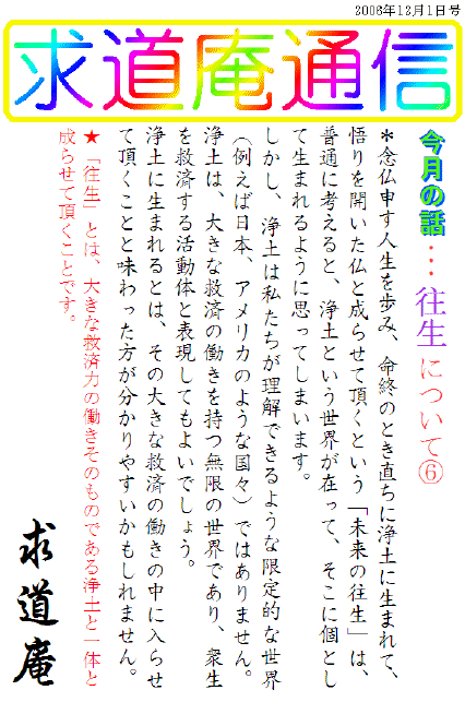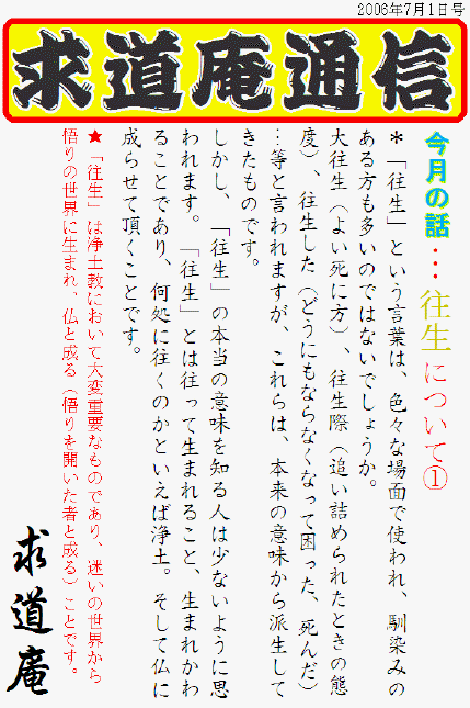 「往生」無しに、生死(しょうじ)の迷いを解決する道は無いのです。