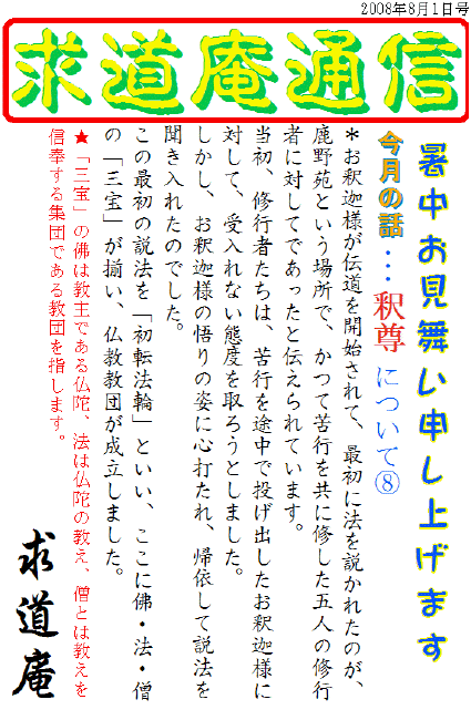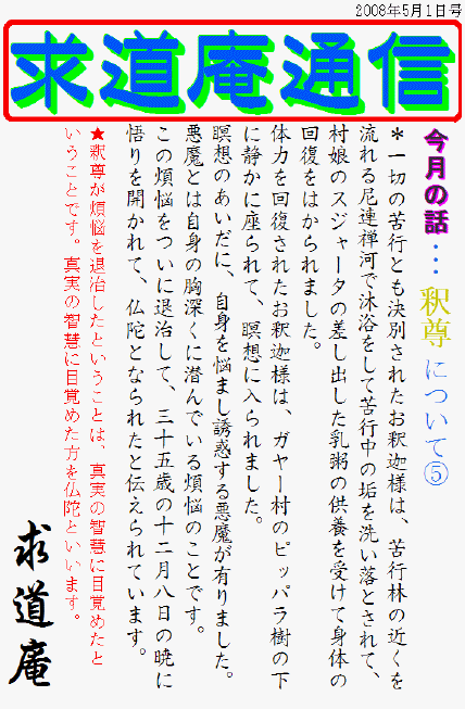 方法ではないと断定された釈尊は、何れにも片寄らない道こそが、悟りを得る真実の道と知られたのです。