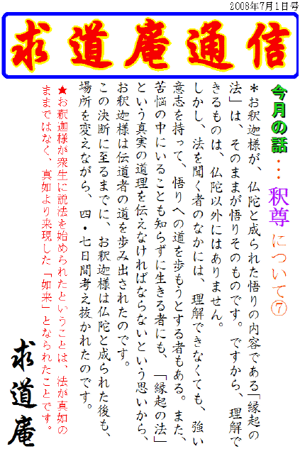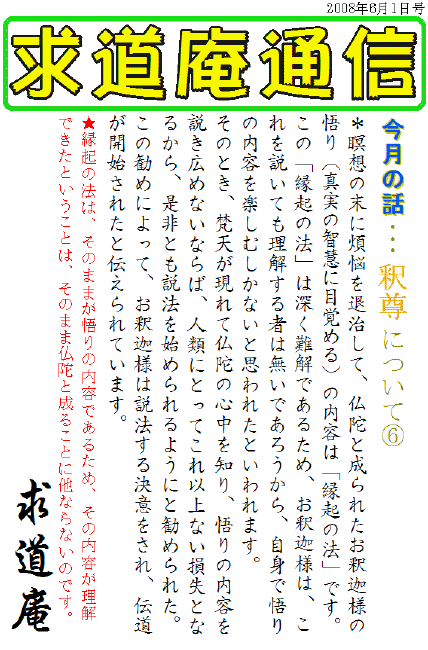 ★ 釈尊が悟りを開かれ仏陀と成られましたが、この悟りの内容である「縁起の法」は、