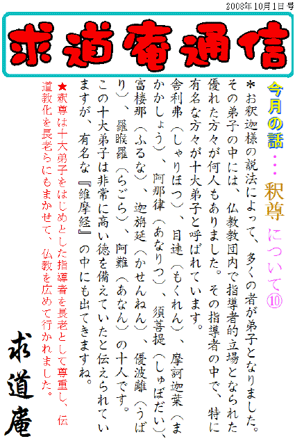 この指導者の中で有名な弟子が、十大弟子と呼ばれる方々です。