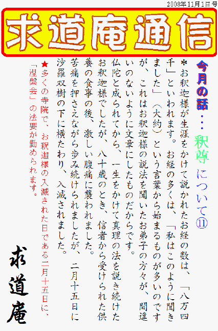 釈尊の入滅の様子は『ブッダ最後の旅』中村 元先生訳 (岩波文庫)に出ています。興味ある方は