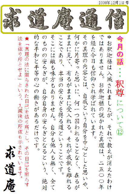 依り所とせず、そして、自らを照らす真理の法を依り所として生きよ」と示されたものが、「自灯明、法灯明。