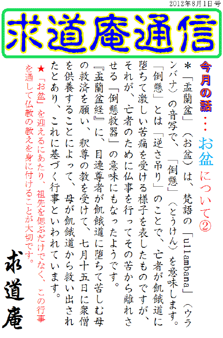 これ以来日本では盂蘭盆会の行事が行われ、全国的な行事になりました。