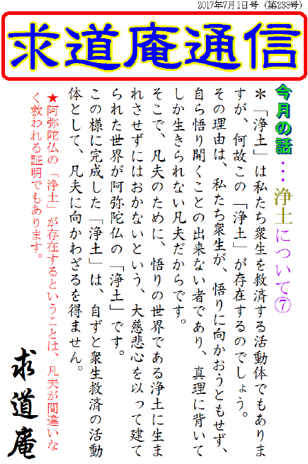 阿弥陀仏の「浄土」が存在することは、自ら悟り開けぬ凡夫が、必ず「浄土」に生まれて悟り開かせて頂けるという証明です。