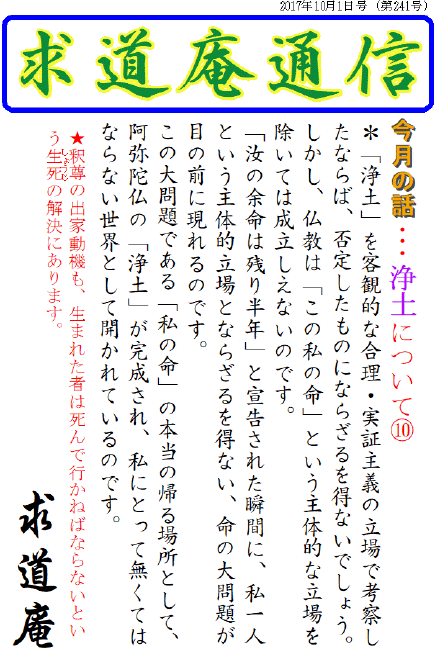 でも、何時かは必ず死んでいかなければならない命と自覚したなら、その私の命の本当の行き先を求めずにはいられないはずです。