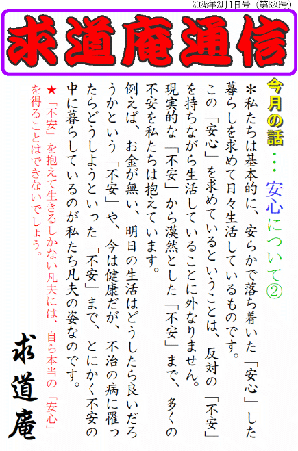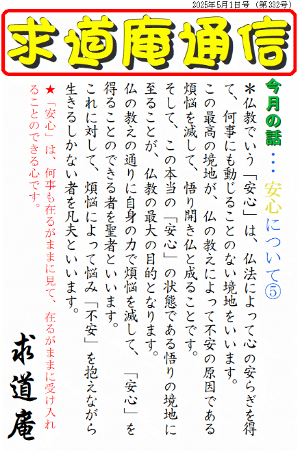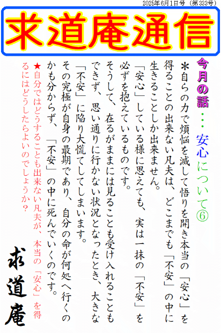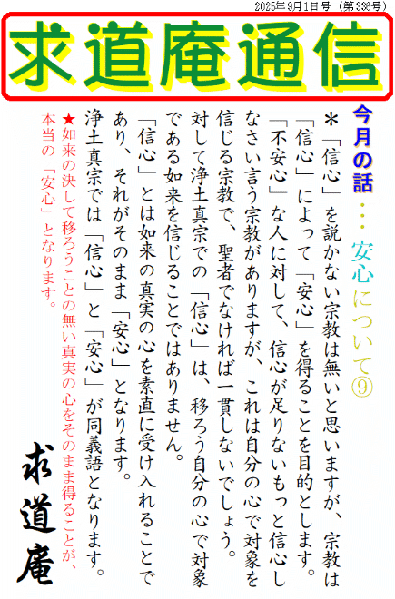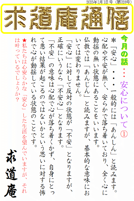 宗教はそんな私たちの「不安」な心に真の安らぎを与え「安心」させる教えのはずです。