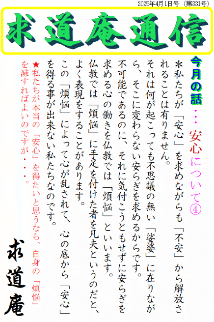★「安心」を求めながらも、私たちが「不安」をかかえてしまう原因は煩悩に有ります。