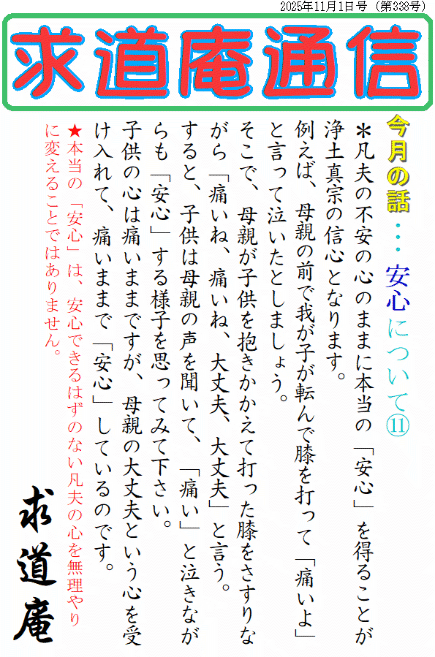 吐露され、煩悩まみれの私たち凡夫の心で「安心」をつくりあげる困難さをおっしゃられています。