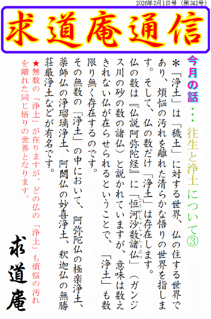 ★「浄土」は「清浄国土」の略で、仏界、仏国、仏刹、浄刹などとも呼ばれます。この「浄土」に対して私たちの住む世界が「穢土」です。